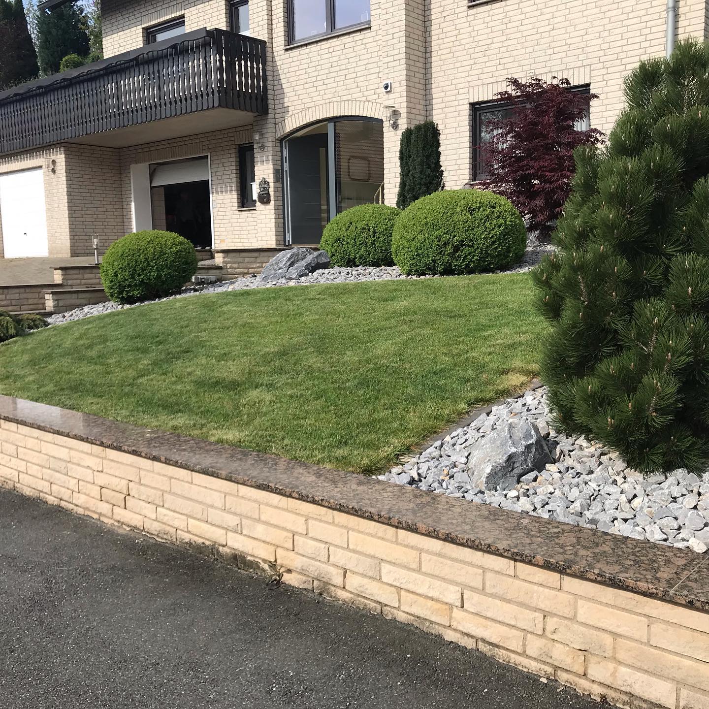 - Raffinierte Strukturen: Die geradlinige Mauer ist mehr als nur eine Begrenzung. Sie verleiht Ihrem Vorgarten Struktur und schafft spannende Perspektiven – ein echter Blickfang, der Bestand hat.